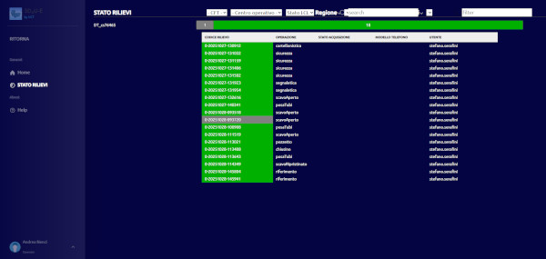 - - Codice rilievo (id rilievo + data e ora di acquisizione)