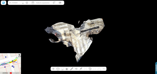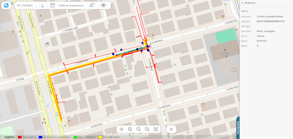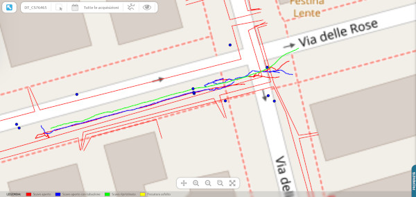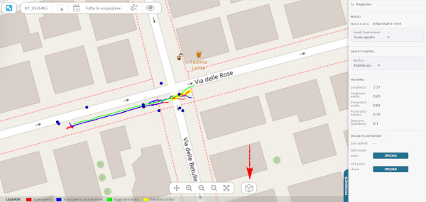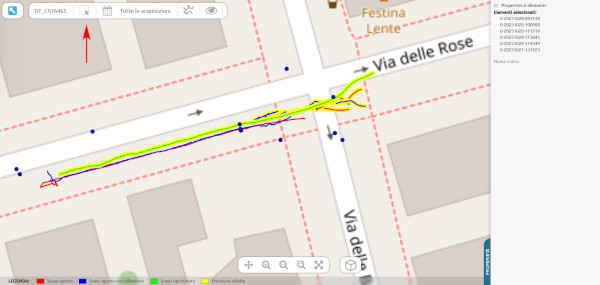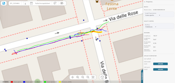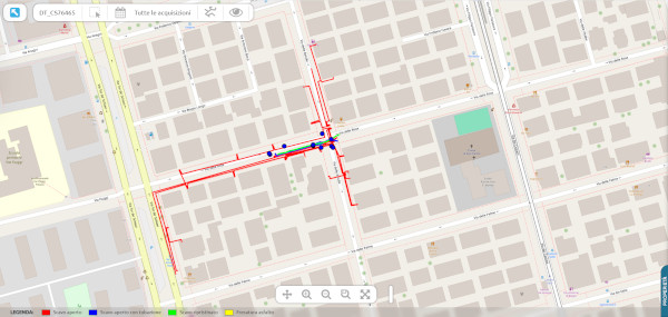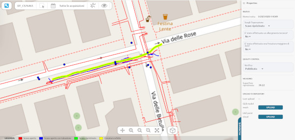 Oltre al grafo della LCL sono visibili le tracce dei rilievi acquisiti (traiettorie eseguite dal telefono durante l'acquisizione) e per i quali è stato eseguito l'upload.