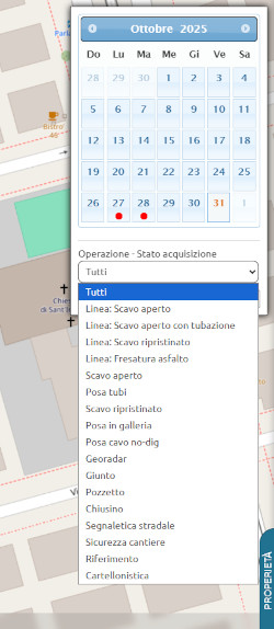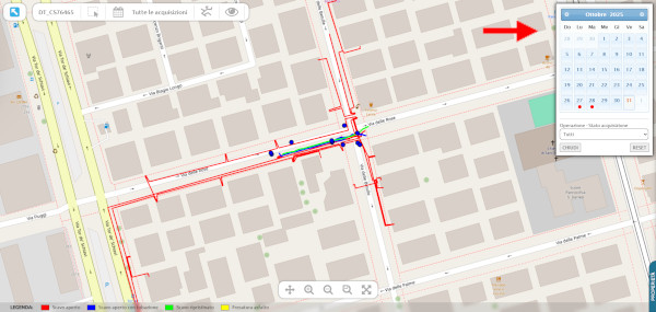 vengono mostrate le acquisizioni eseguite nel giorno selezionato. Il pallino verde indica i giorni in cui sono state eseguite delle acquisizioni